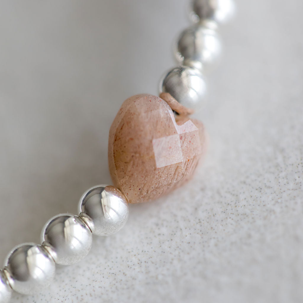4mm Peach Moonstone Heart bracelet
