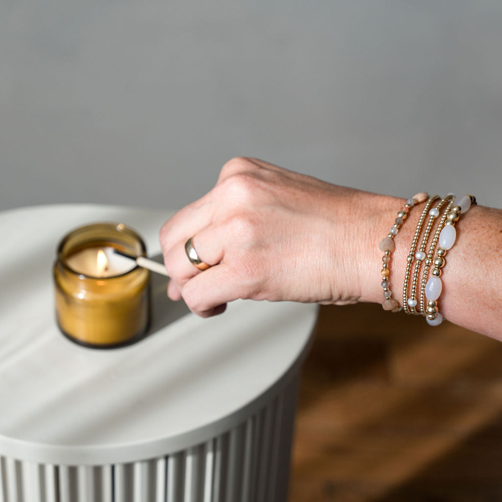 The larger beads (8mm and 10mm) have a larger surface area, so scratches and spots are more obvious. They will likely need more regular care than then smaller beads. -