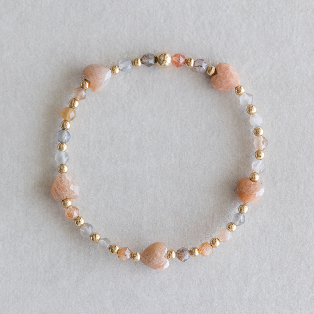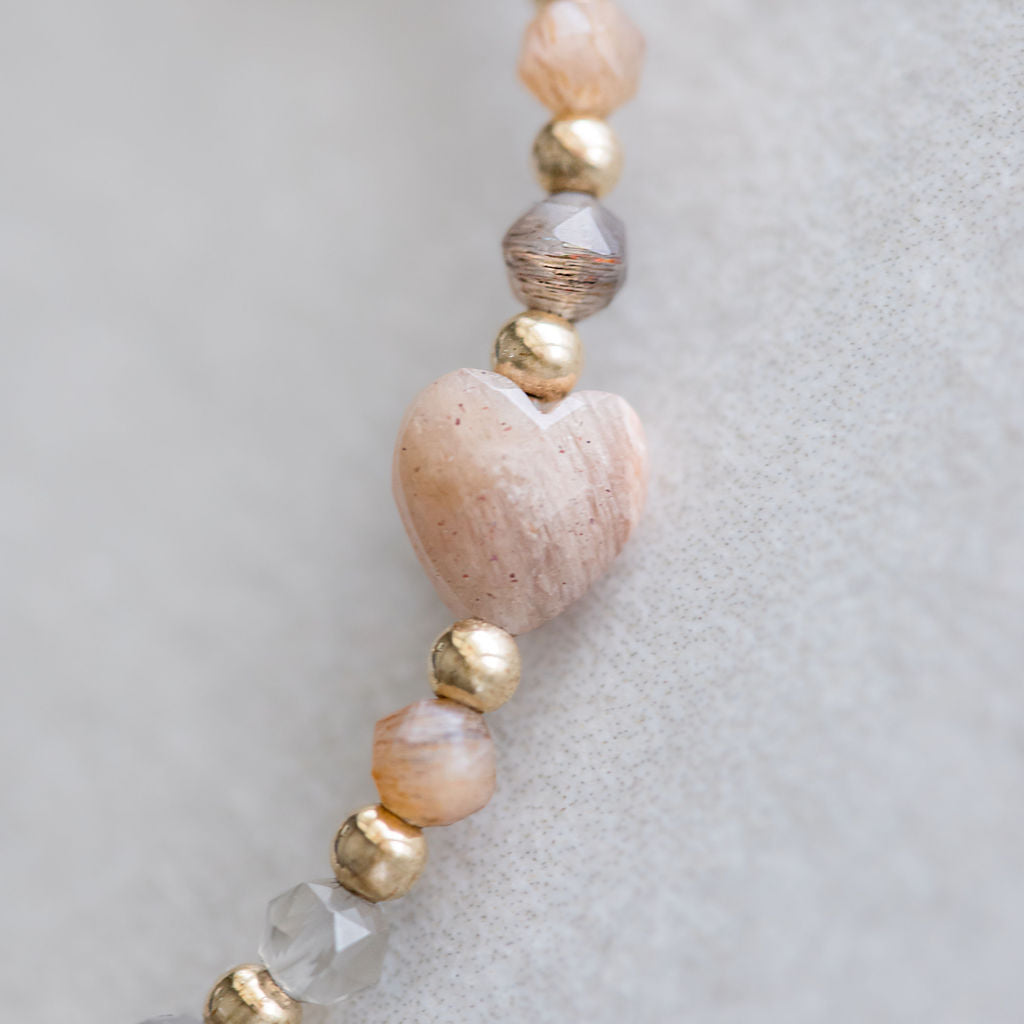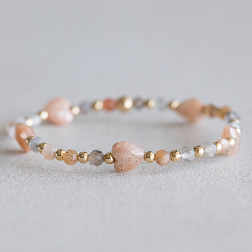 3mm 14k Gold-filled | 4mm Faceted sunstone | 8mm Peach moonstone hearts